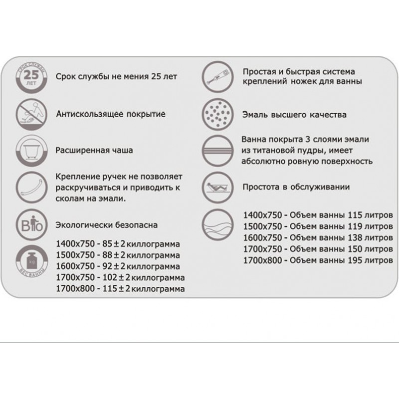 Комплект поставки: Ванна, комплект ножек, ручки, инструкция