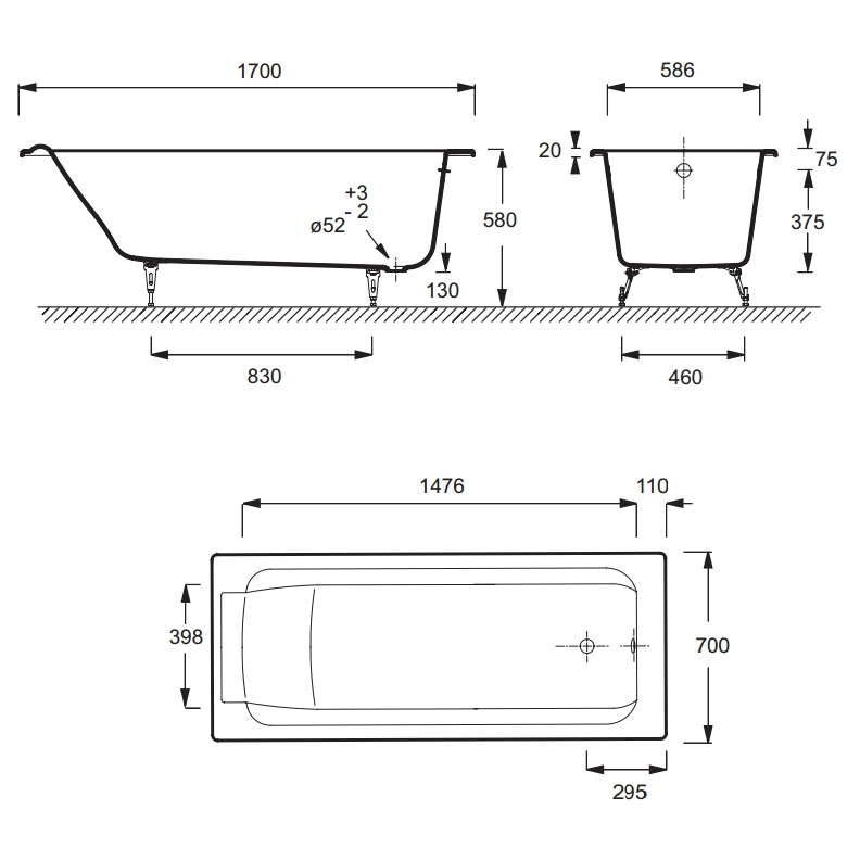 | Высота ванны на ножках, см | 58-60 |