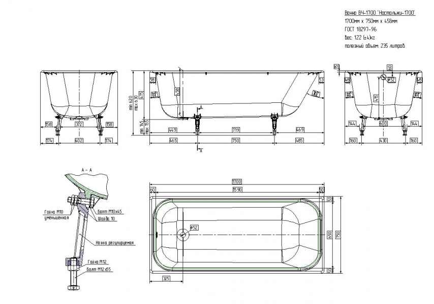 Если надлежит приобрести вместительное сантехническое оборудование для ванной комнаты, то идеальным решением станет чугунная ванна Ностальжи 170X75 Универсал с ручками. Подойдет для людей любого роста, так как ванну отличает достойный показатель глубины.