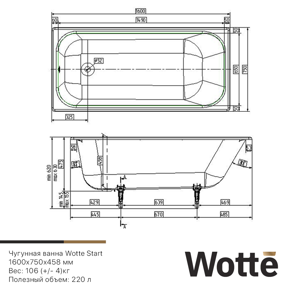 | Высота ванны на ножках, см | 62-63 |