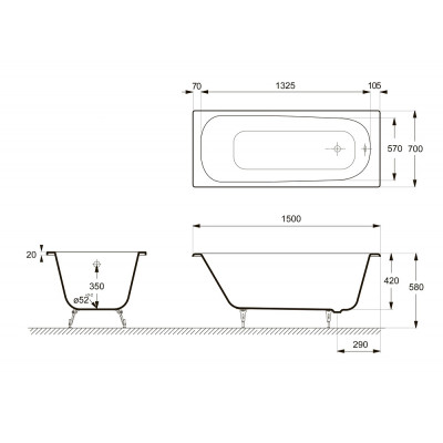| Высота ванны на ножках, см | 55 - 59.5 |