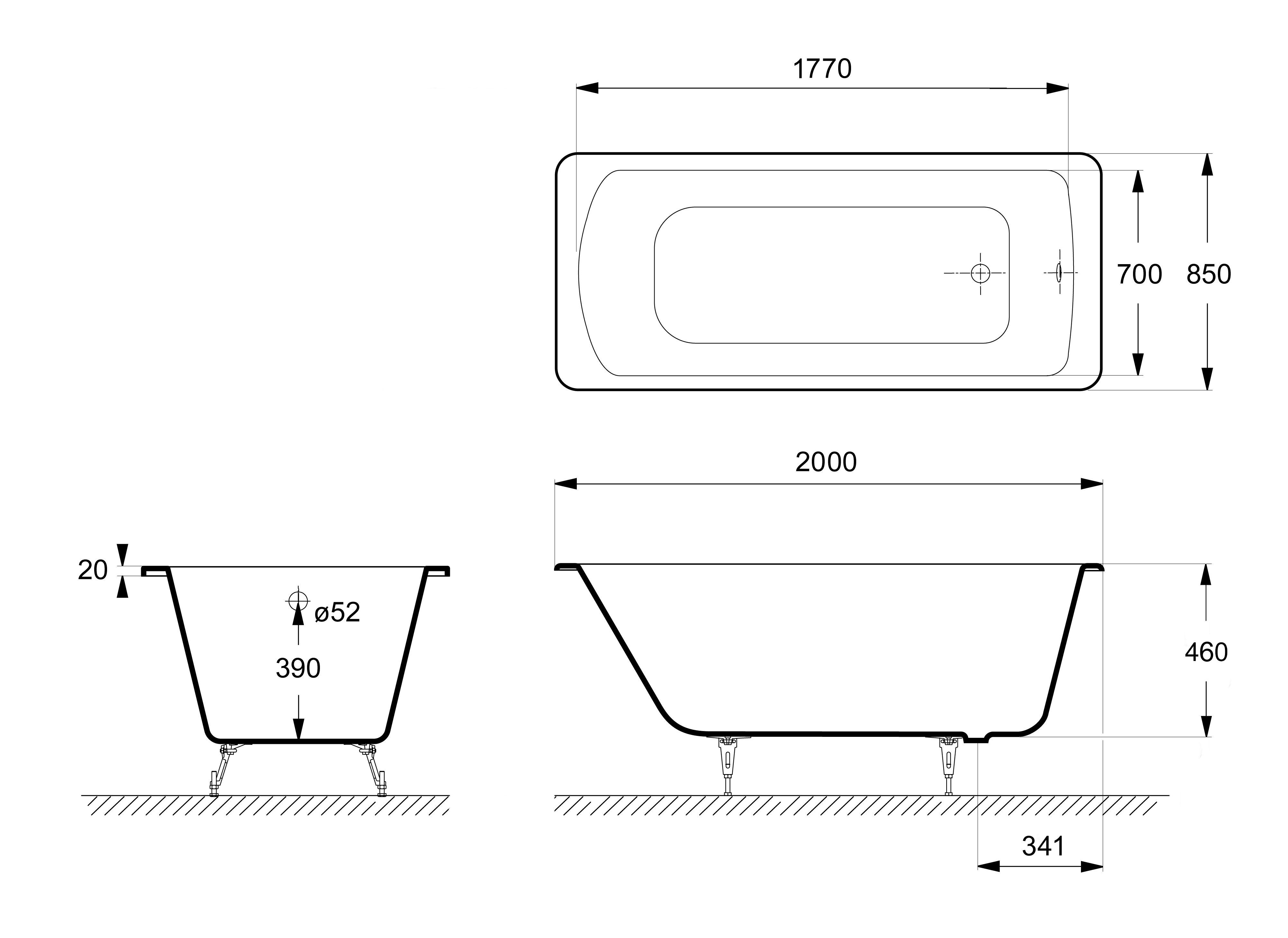 | Высота ванны на ножках, см | 59 - 63.5 |