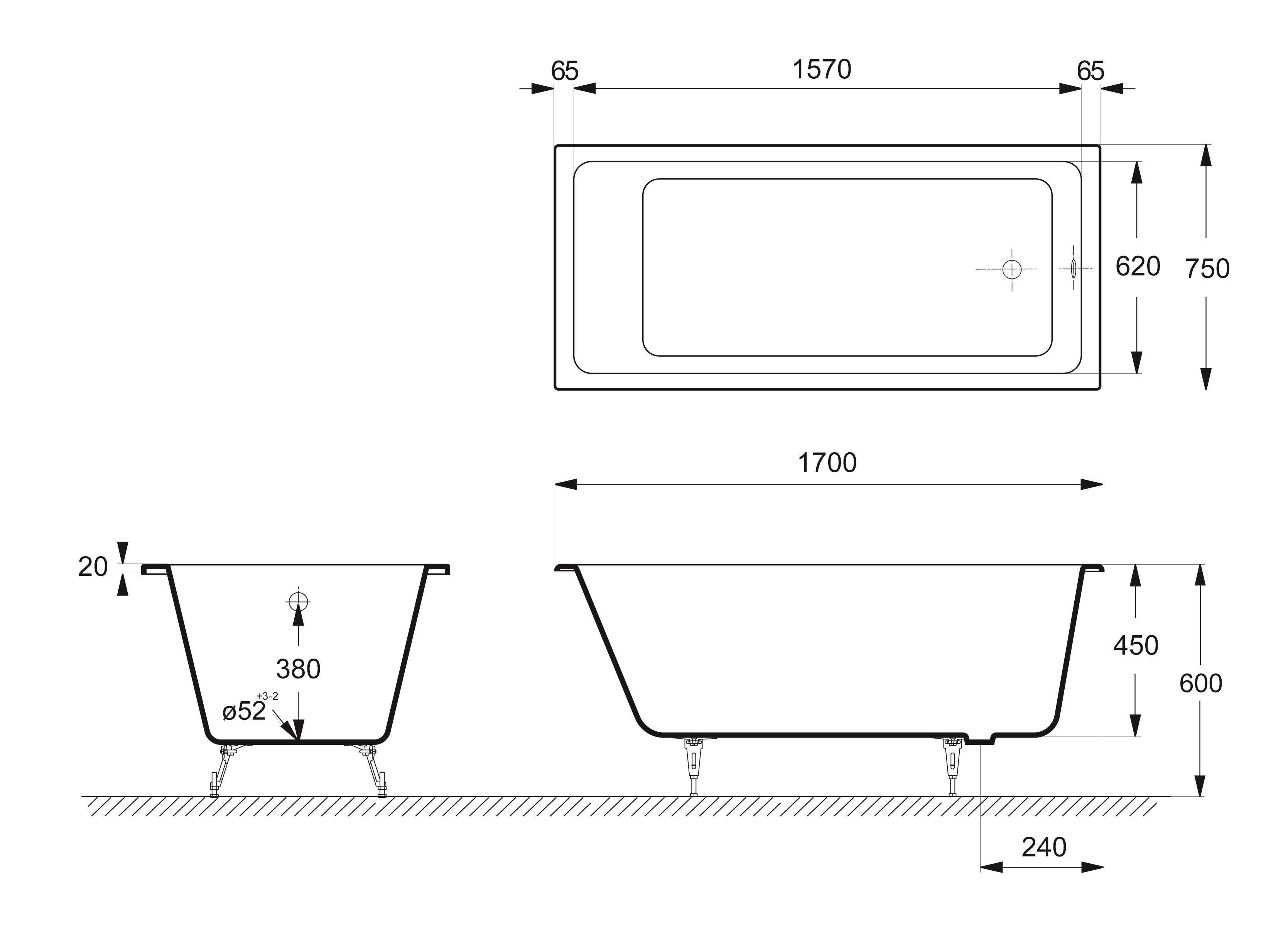| Высота ванны на ножках, см | 58 - 62.5 |