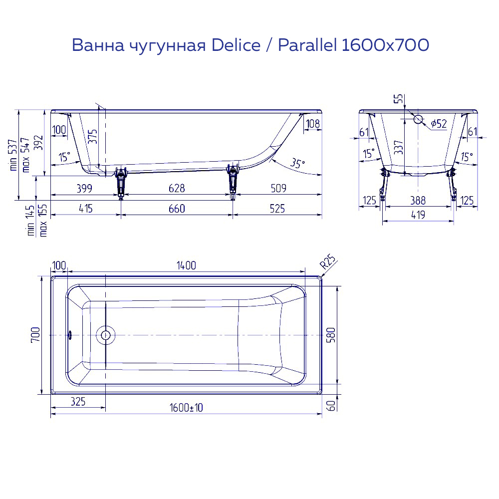| Высота ванны на ножках, см | 54.7 |