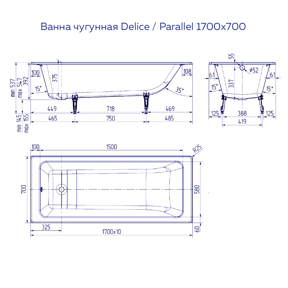 | Высота ванны на ножках, см | 54.7 |