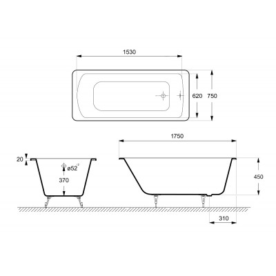 | Высота ванны на ножках, см | 58 - 62.5 |
