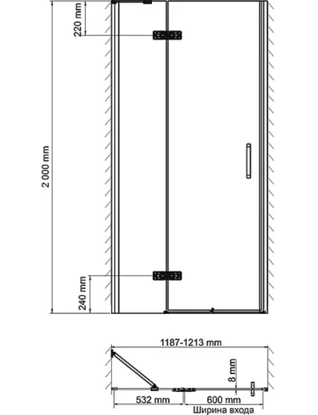 | Толщина двери, мм | 8 |