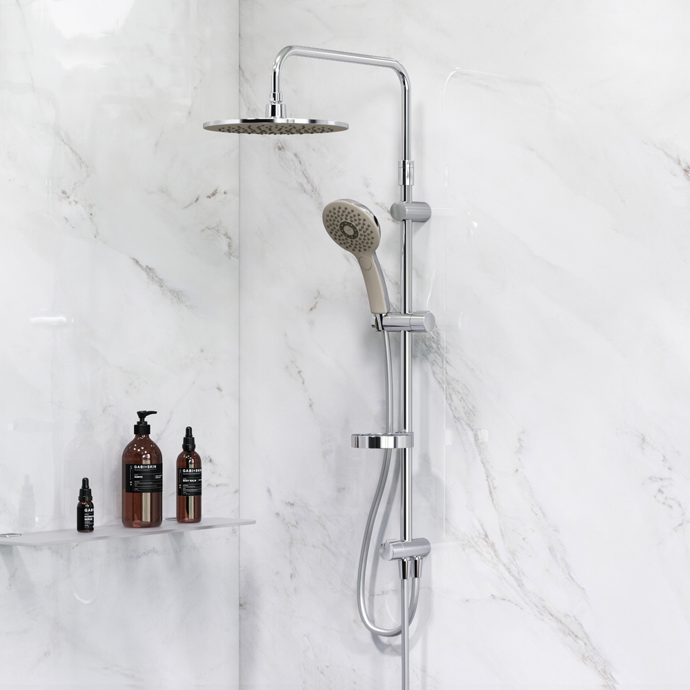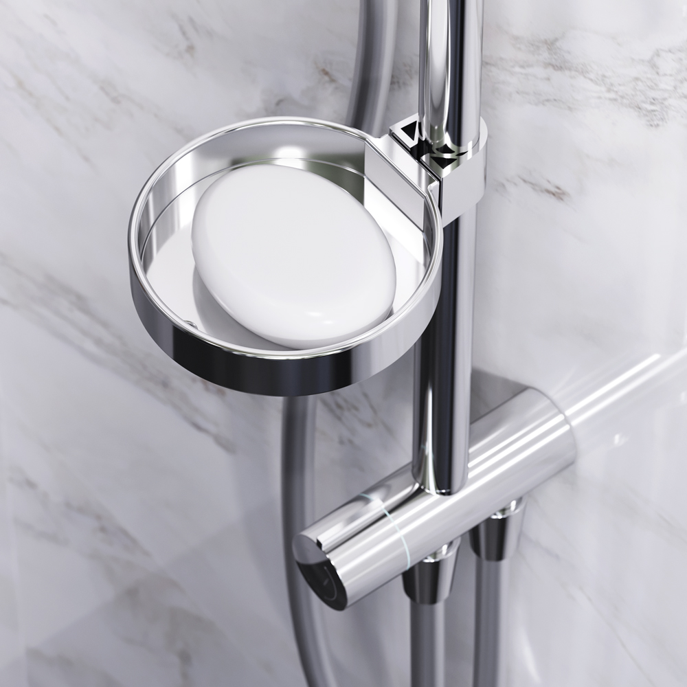 Продуманные детали для удобства использования: штанга регулируется по высоте в диапазоне от 1 030 до 1 460 мм  обеспечивая комфорт для людей любого роста  шаровый шарнир в держателе верхнего душа позволяет регулировать угол его наклона  душевой шланг 1750 мм  верхний душ диаметром 254 мм  ручной душ диаметром 120 мм.