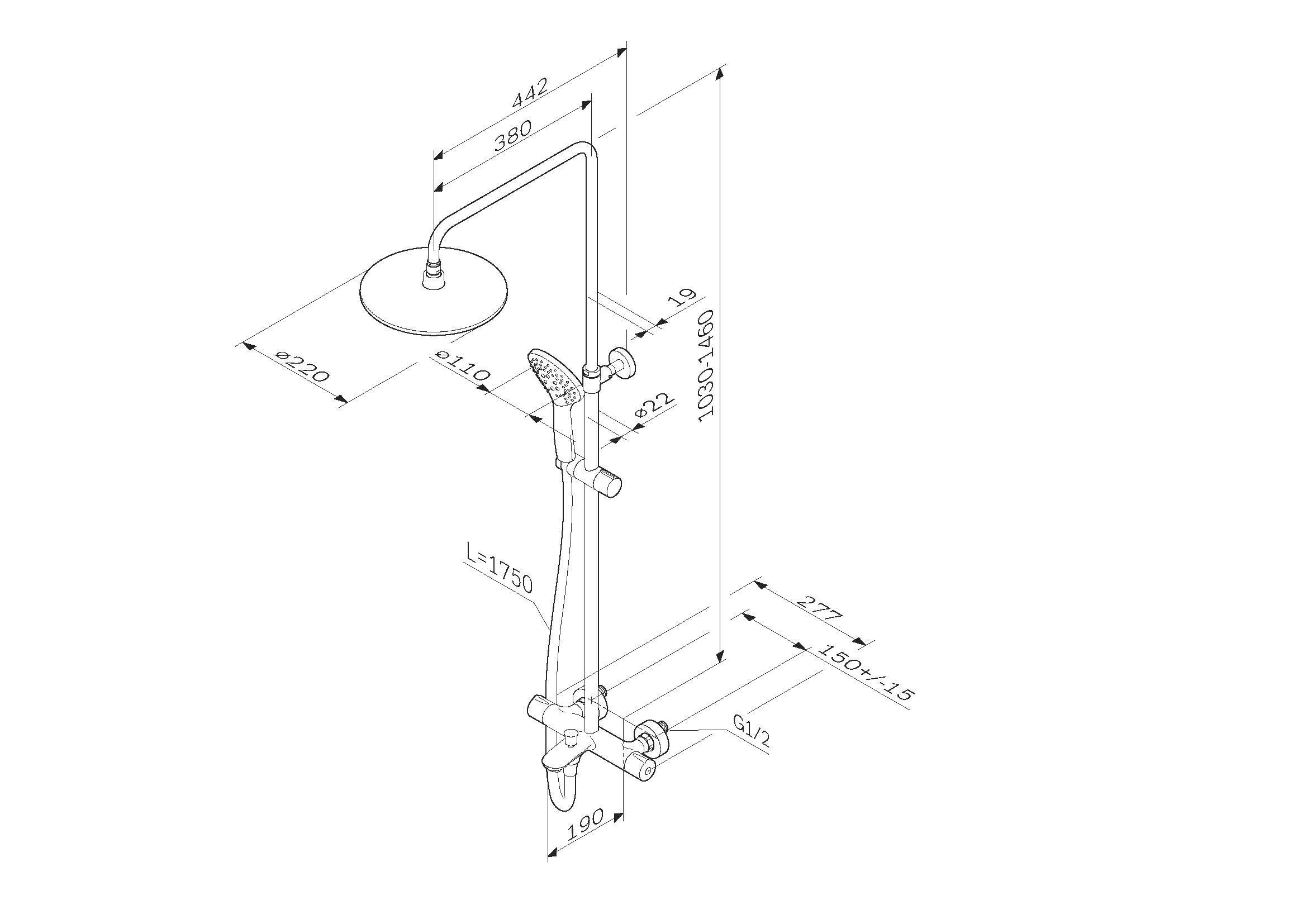 | Размеры верхнего душа, см | 22 |