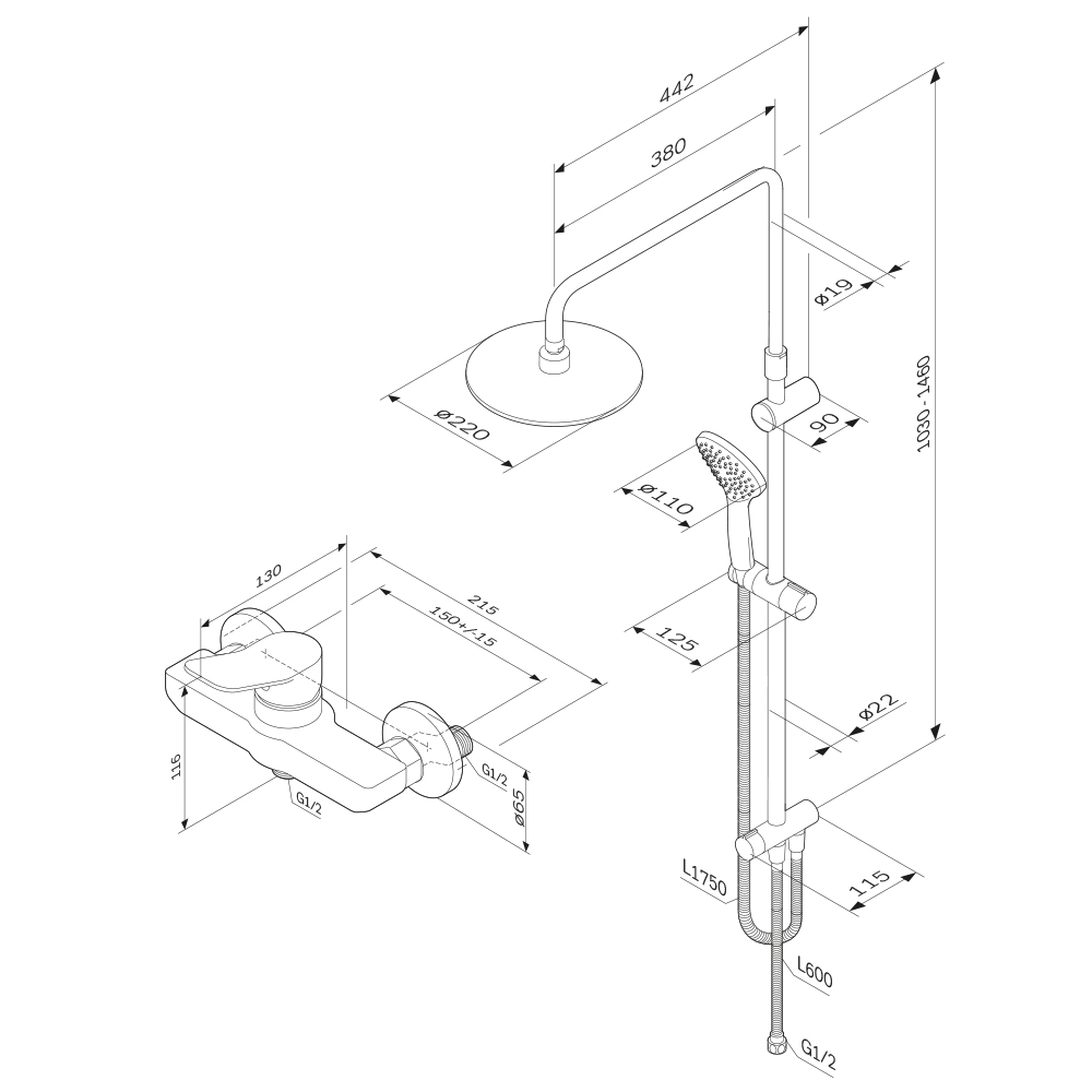 | Размеры верхнего душа, см | 22 |