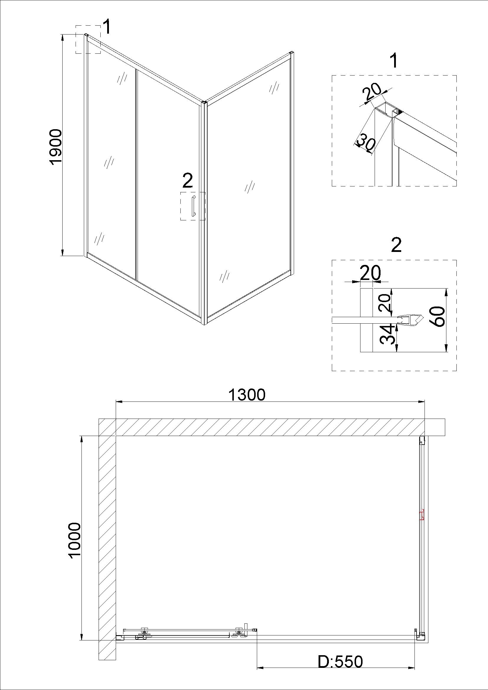 | Материал полотна двери | закаленное стекло |
