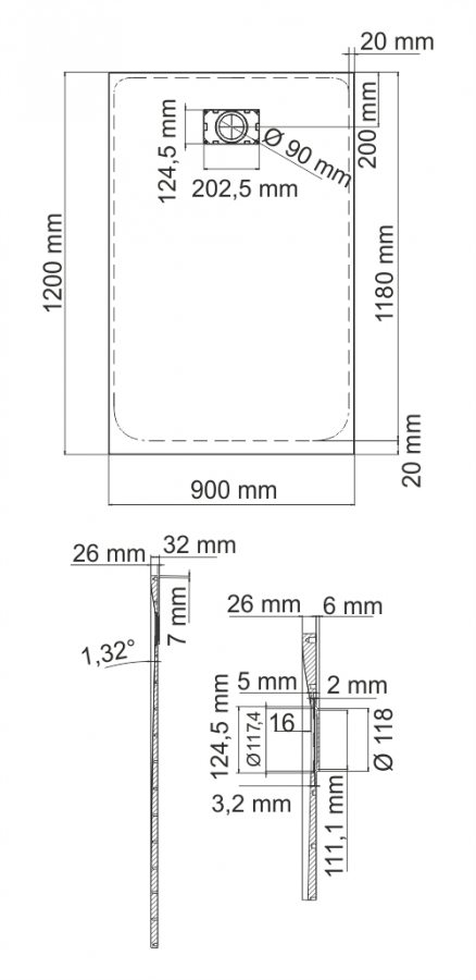 | Высота поддона, см | 3.2 |