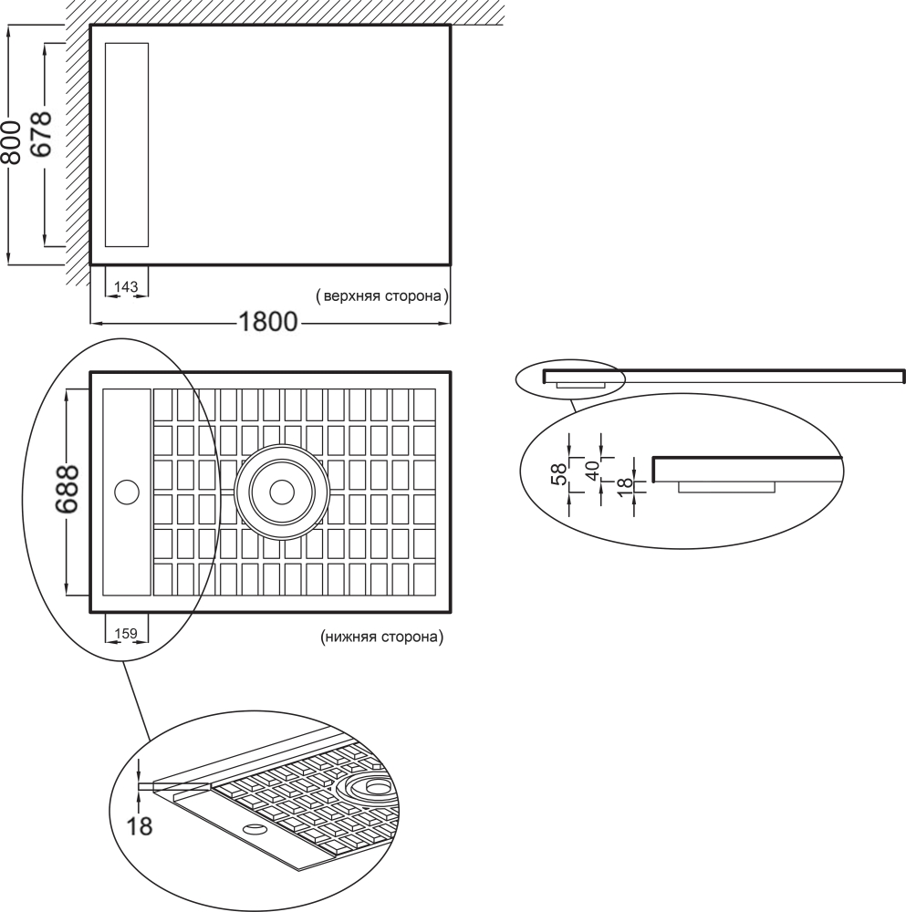 | Материал поддона | Акрил |