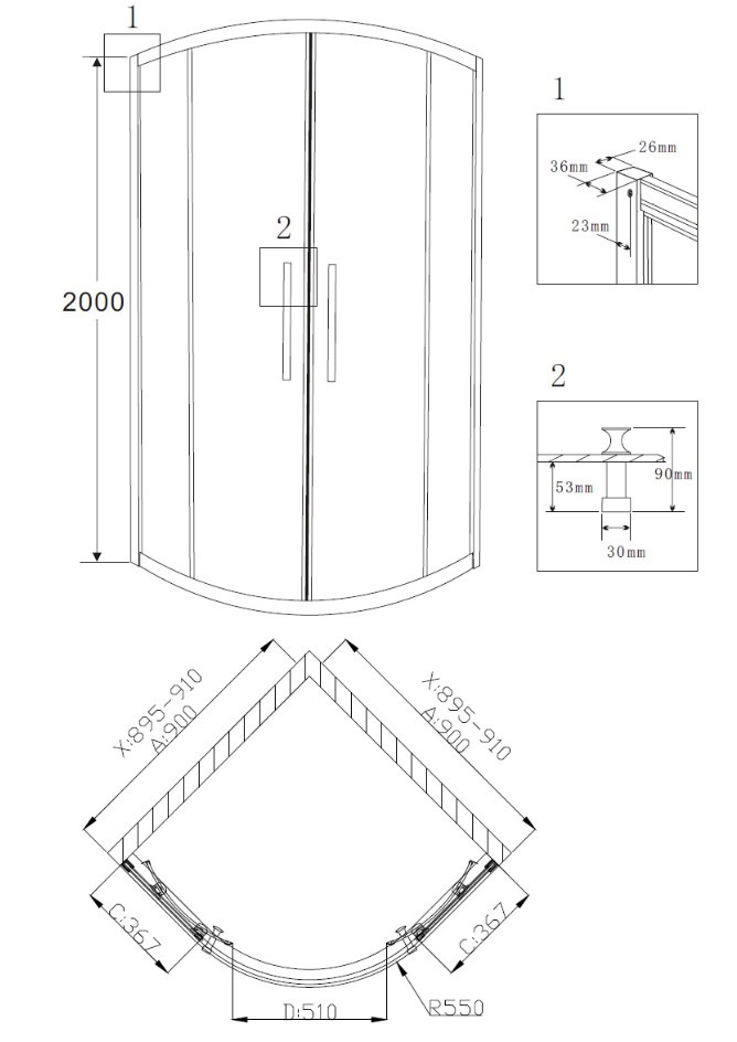 | Форма | Четверть круга |