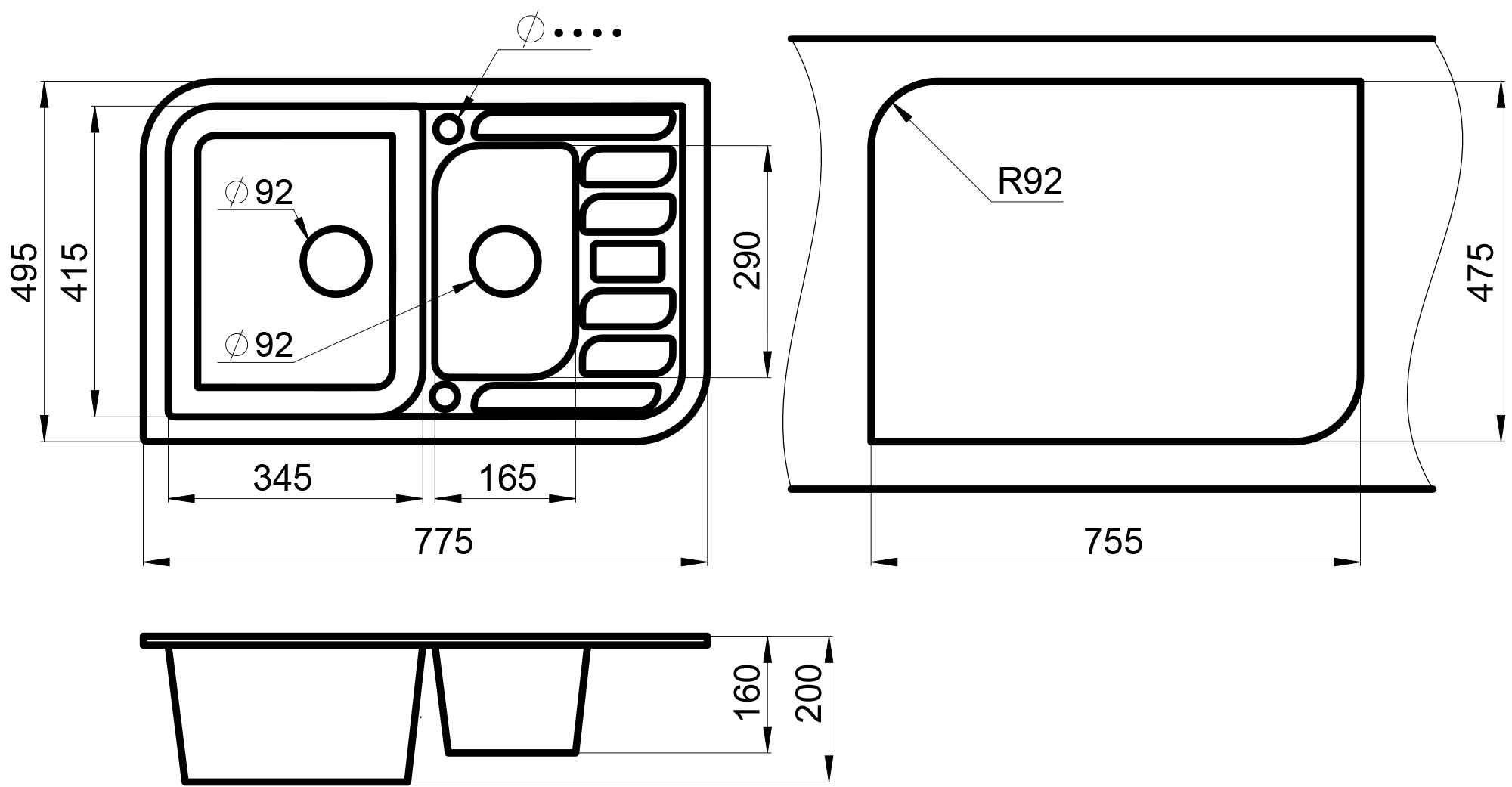 | Количество отверстий под смеситель | Нет |