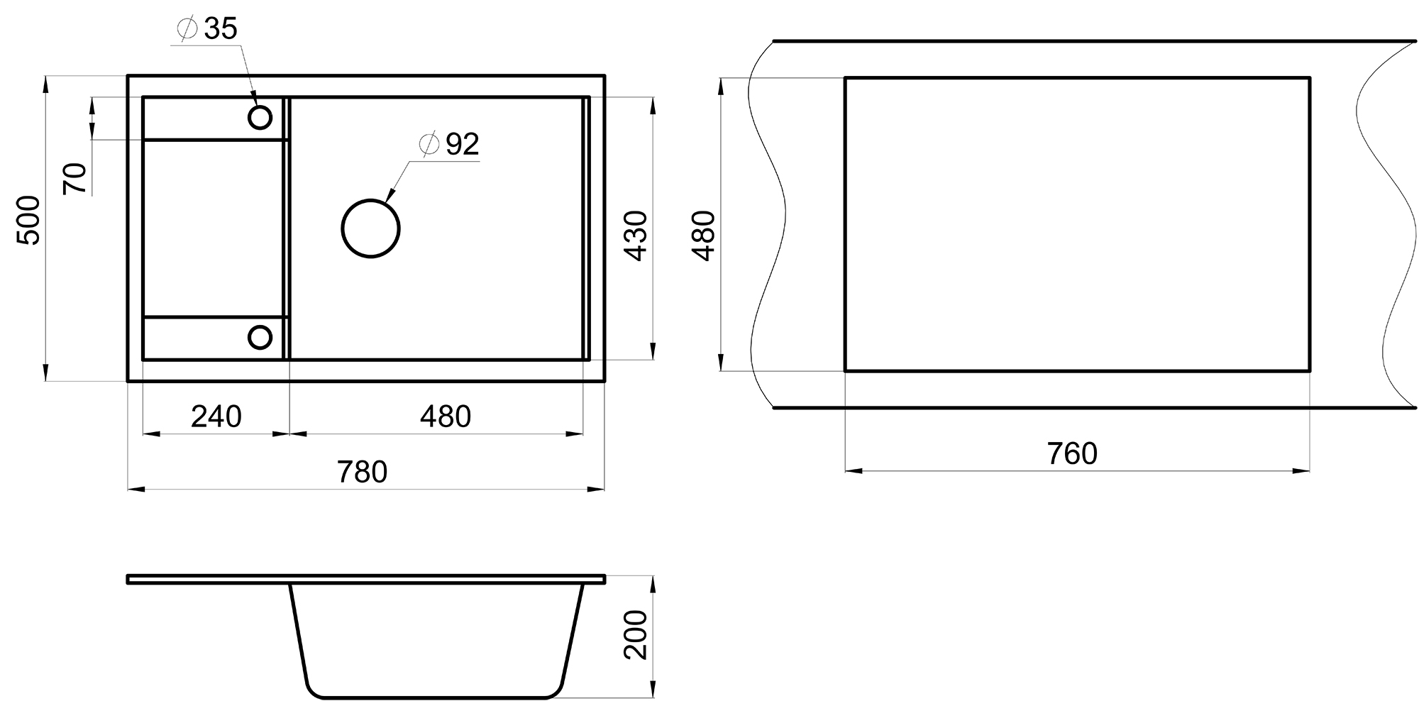 | Количество отверстий под смеситель | Нет |