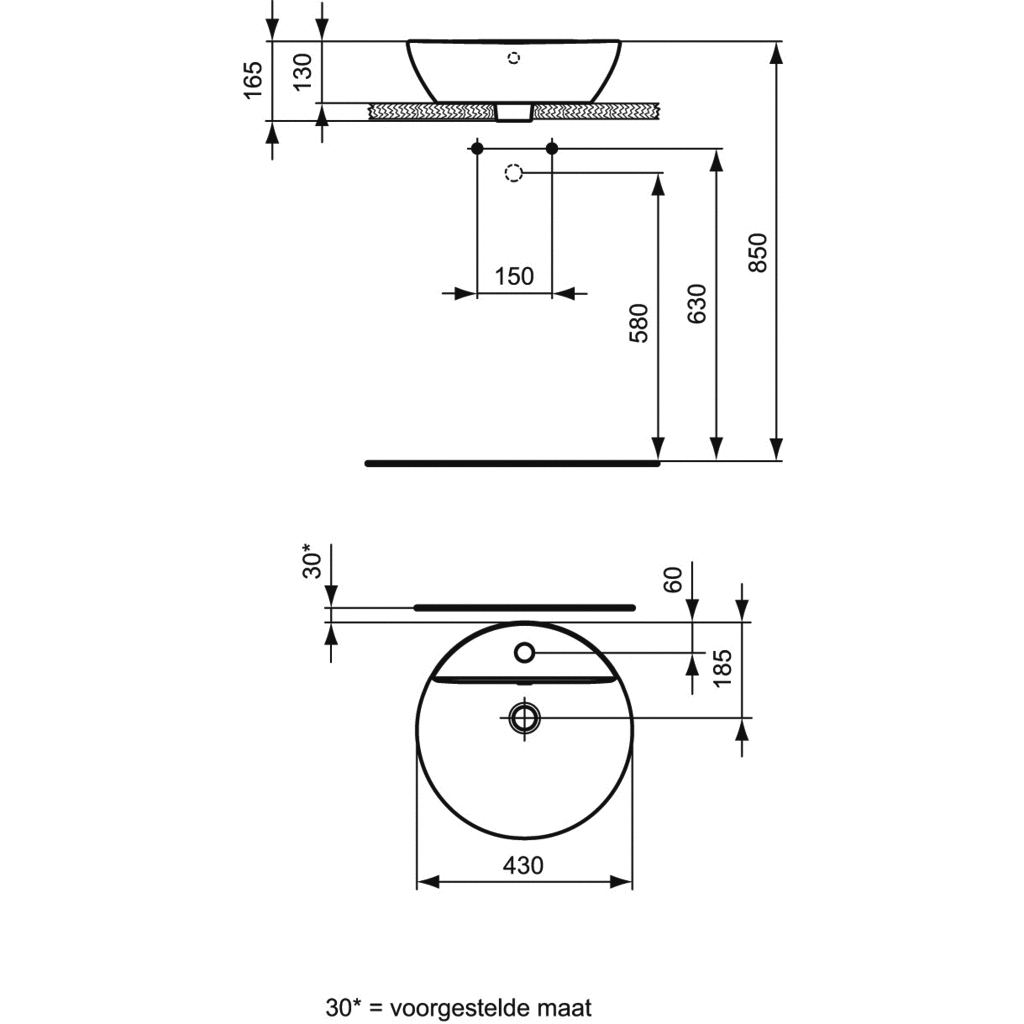 | Количество готовых отверстий под смеситель | 1 |