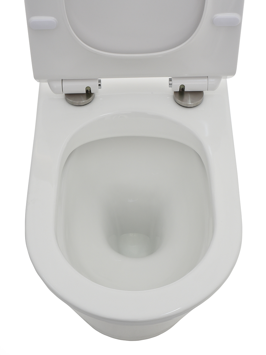 Сиденье унитаза оснащено системой плавного опускания крышки.