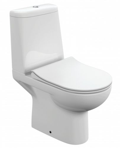 Унитаз керамический безободковый, горизонтальный выпуск; бачок смывной керамический с нижним подводом воды; двухуровневый спускной механизм; сиденье для Унитаза из дюропласта с легкосъемом и с функцией плавного закрывания; монтажный комплект; инструкция/гарантийный талон