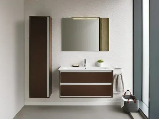 CONNECT AIR Пенал для подвесного монтажа, 1 дверца с системой плавного закрытия, реверсивная версия. Внутри 4 стеклянные и 1 деревянная полочки. С крепежом