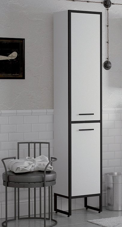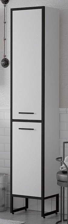 Шкаф-пенал Corozo Айрон 35 черный/белый имеет выразительный образ в ультра-модном лофт дизайне, предназначенным для обустройства современных арт-интерьеров. Прямоугольный модуль напольного размещения с двумя распашными дверками имеет металлическую несущую конструкцию из профильной трубы, обработанную темным износостойким покрытием. Заполнением служит качественный влагостойкий материал – МДФ, покрытый итальянской высокоглянцевой полиуретановой эмалью.