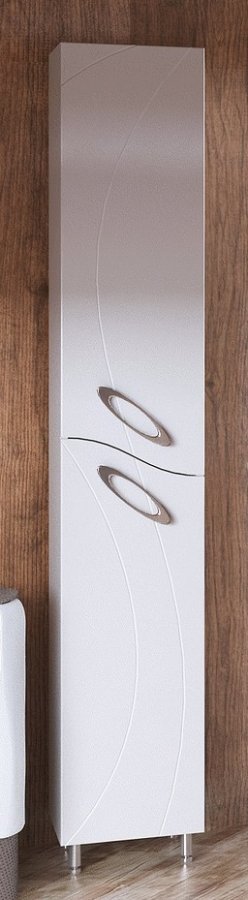 Шкаф-пенал Corozo Наина 30 белый – это мебель элегантного и интересного дизайна, разработанная специально для хранения в помещении ванной комнаты. Компактная и эргономичная конструкция изделия устанавливается на металлические опоры, и оснащается двумя распашными отделениями, дверцы которых укомплектованы петлями со встроенными доводчиками. Фасады пенала декорированы фигурной гравировкой и обыграны объемными ручками овальной формы.