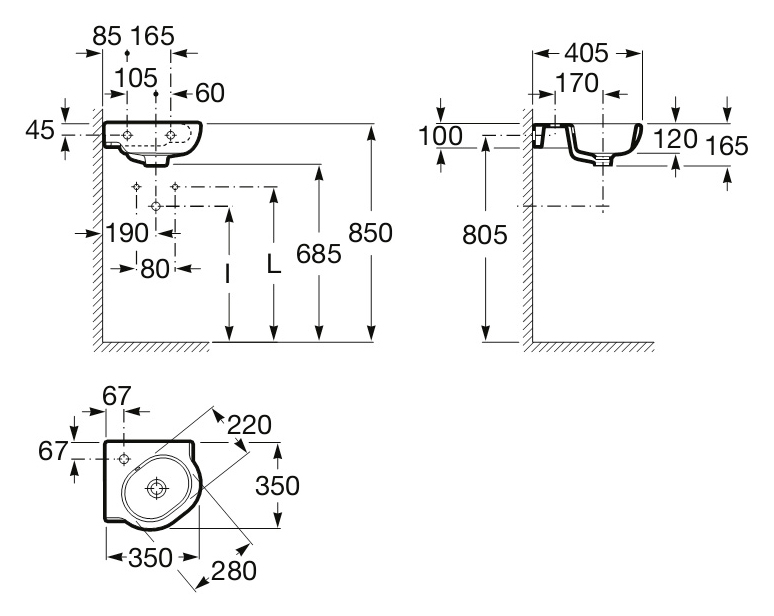 | Форма раковины | Угловая |