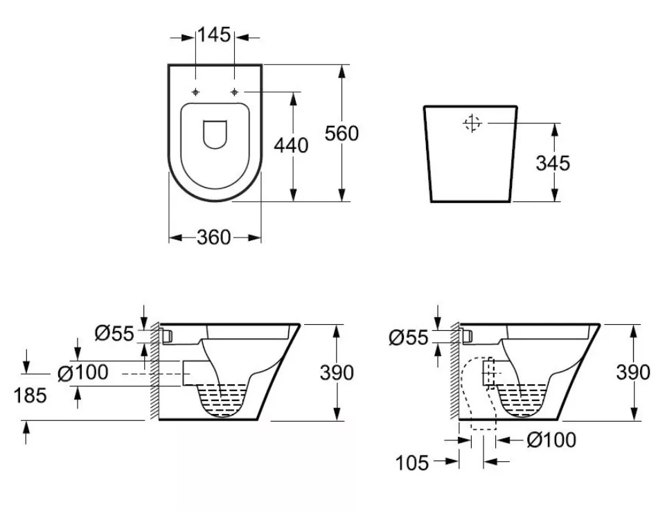 - Устанавливается на пол возле стены. Система слива (бачок) монтируется в стену. Не требует инсталляции.