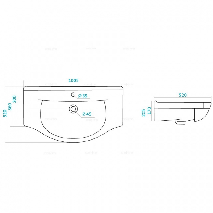 | Тип раковины | Полувстраиваемая |