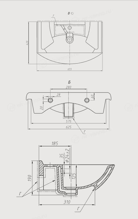 | Расположение перелива | да |