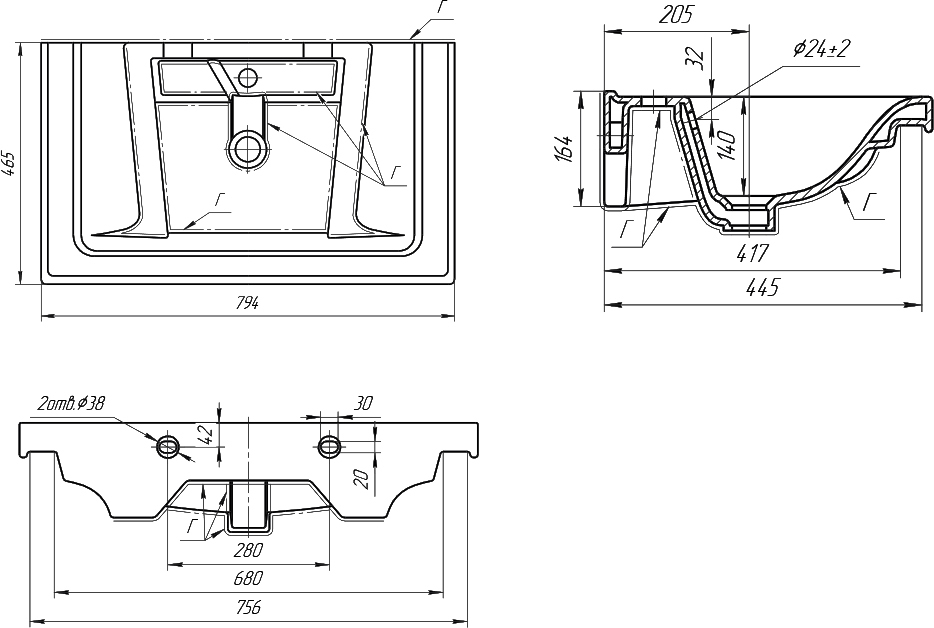 | Тип раковины | Встраиваемая сверху |