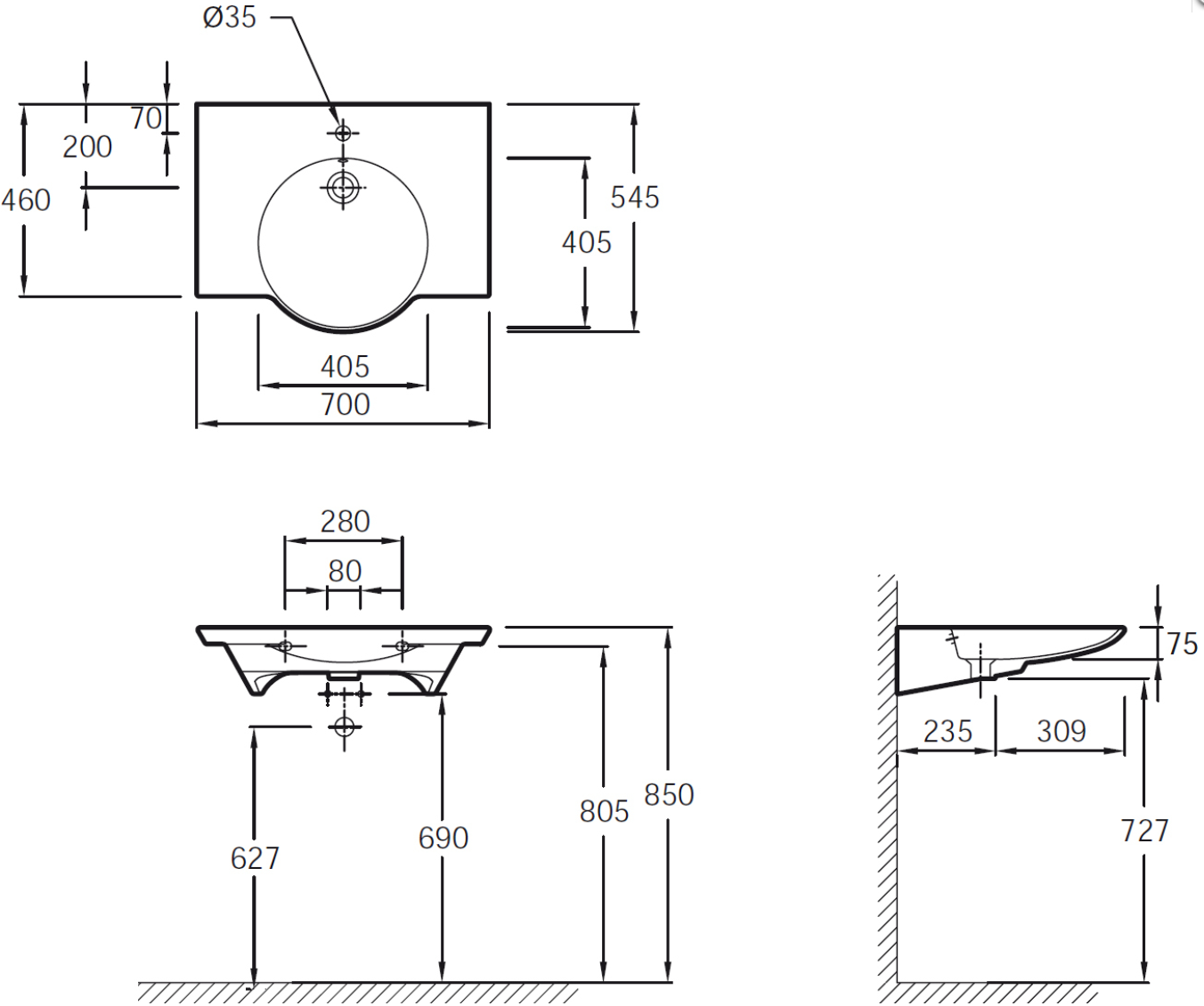 Тип раковины Подвесная, Столешница