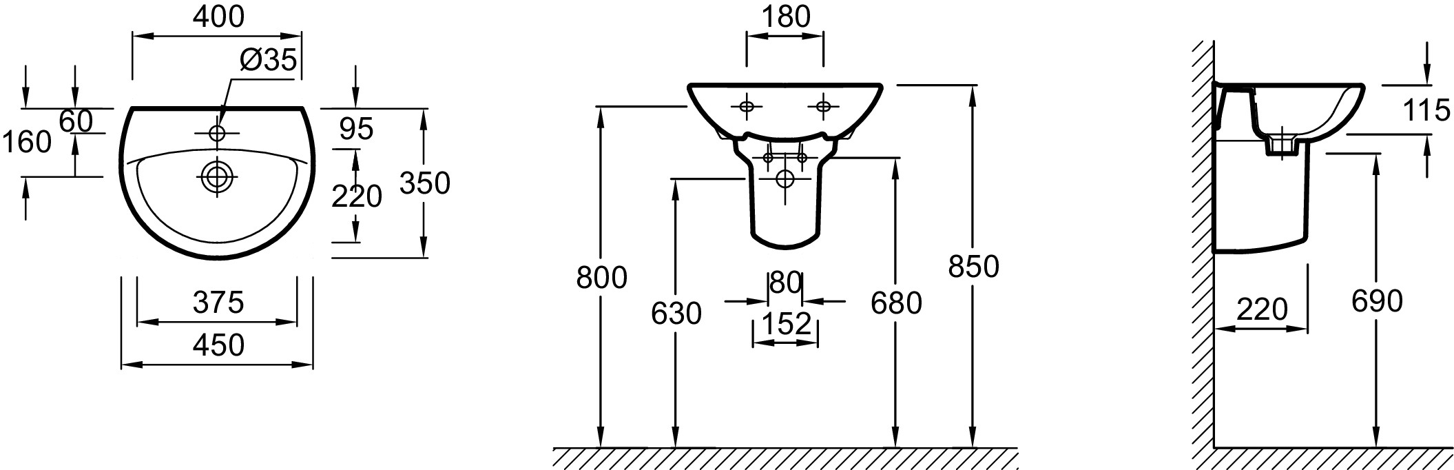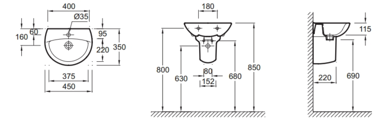 | Тип раковины | Подвесная, Рукомойник |