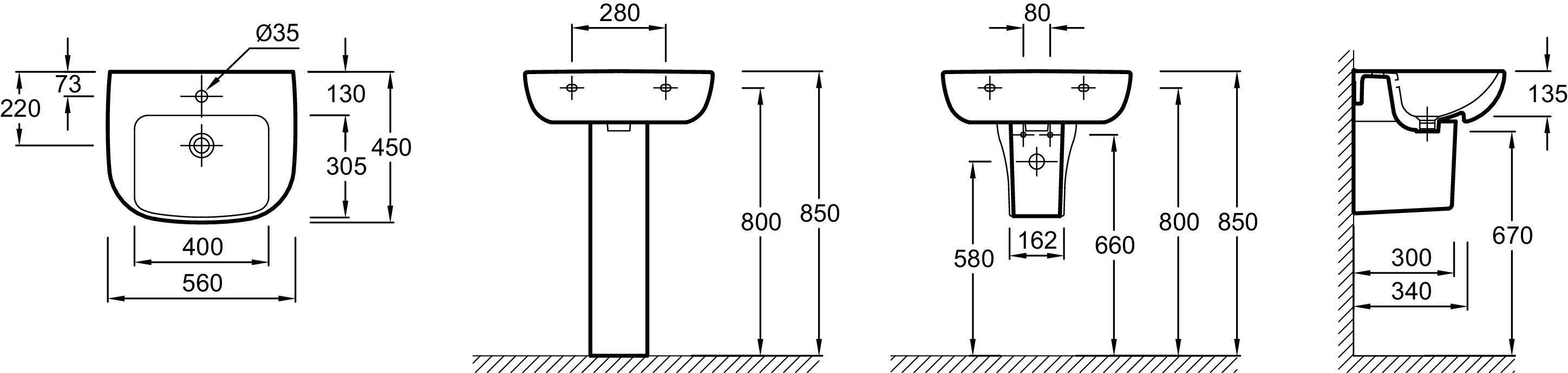 | Тип раковины | Подвесная, С полупьедесталом, С пьедесталом |