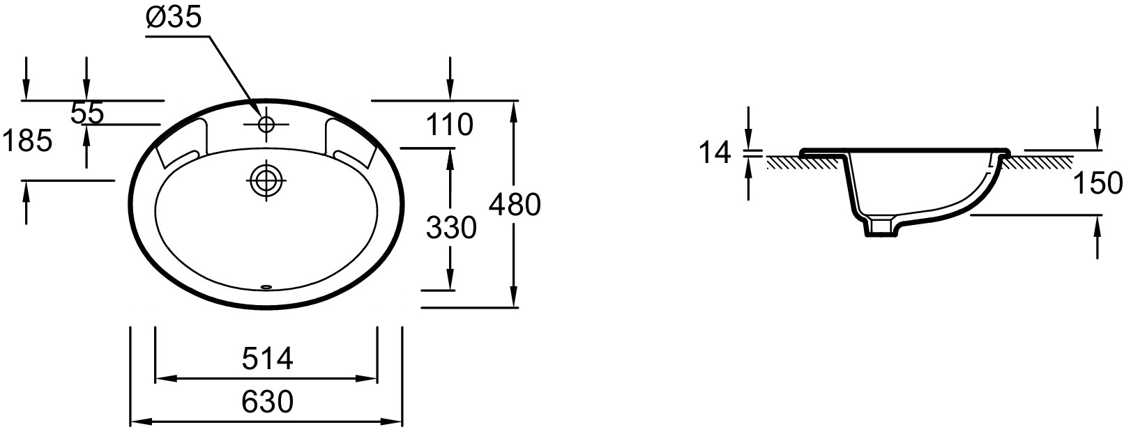 | Тип раковины | Встраиваемая сверху |