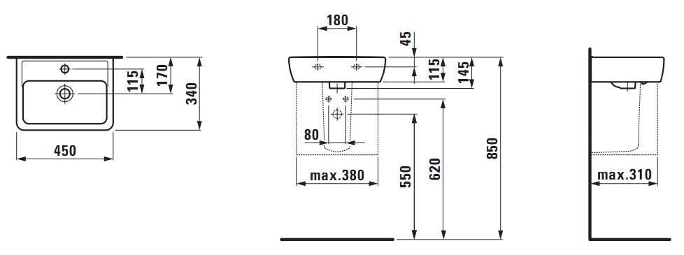 | Тип раковины | Подвесная, Рукомойник, С полупьедесталом |