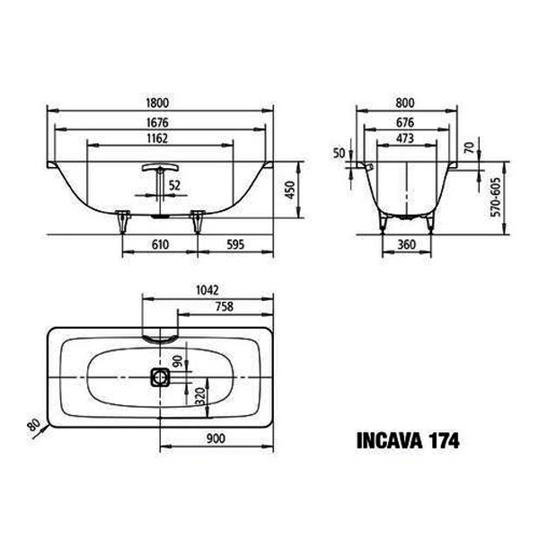 | Высота ванны на ножках, см | 57-60 |