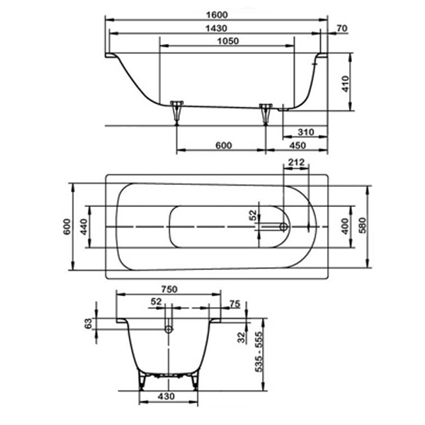 | Высота ванны на ножках, см | 54-56 |