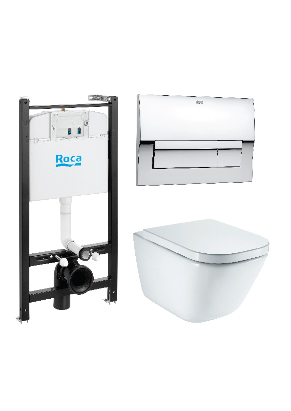 В комплекте: подвесной унитаз, инсталляция со встроенным смывным бачком, клавиша смыва, крышка-сиденье с системой микролифт.