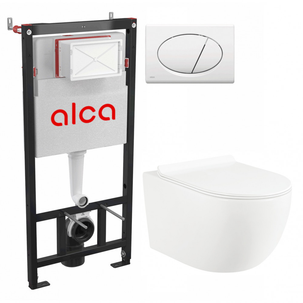 Система инсталляций Esfera:инсталяция, кнопка белая, унитаз подвесной безободковый, сиденье дюропласт , микролифт , быстросьемное Selena E001WG/M70