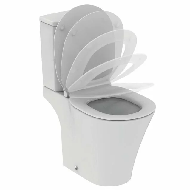 CONNECT AIR AquaBlade® Напольный унитаз (чаша) для монтажа с бачком, горизонтальный выпуск (может дополняться пластиковыми выпускными патрубками на 90˚), глубокий смыв, сиденье и крышка в комплекте заказывается дополнительно, с крепежом. Инновационная технология смыва AquaBlade обеспечивает идеальное качество смыв.Отсутствует нависающий обод, благодаря чему вода поступает с верхней точки чаши, обеспечивая 100% чистый смыв по всей поверхности
