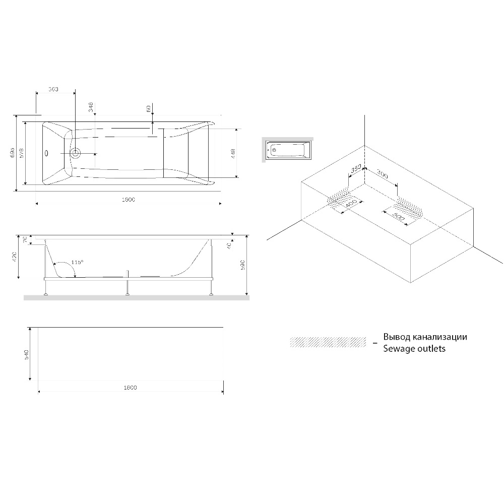 | Расположение перелива | стандартное сбоку |