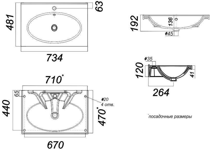 | Тип раковины | Полувстраиваемая |